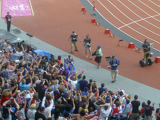 Word got round and within seconds everyone in the stadium had seen him and the roar was deafening. The atmosphere was transformed, from an excited chatter and an expectant buzz to a cauldron of noise and colour. Union flags filled the scene. The messiah had returned to his people, to the stage where had illuminated the world only one week before, when he won the 10,000m.