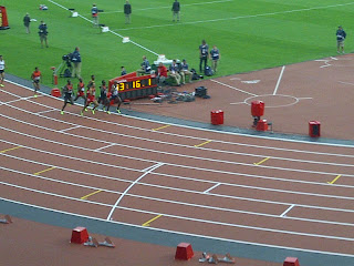 Saturday 11th August. It was 7.25pm and a group of athletes emerged in single file from beneath block 244, all wearing the colourful tracksuits of their nation. They followed the ‘games makers’ into the arena and made their way slowly to the start point on the back straight. Whilst the women’s high jump had started, this was the first race of the evening.